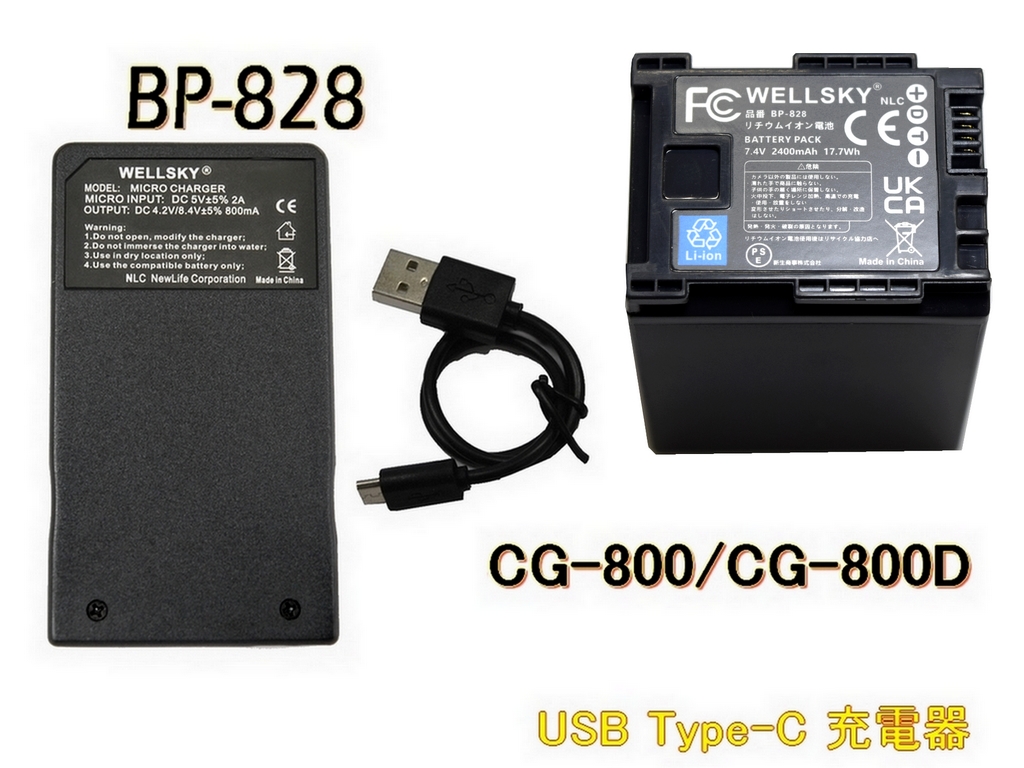 BP-828 互換バッテリー 1個 + CG-800 CG-800D [ 超軽量 ] USB Type-C 互換充電器 バッテリーチャージャー 1個 CANON キヤノン