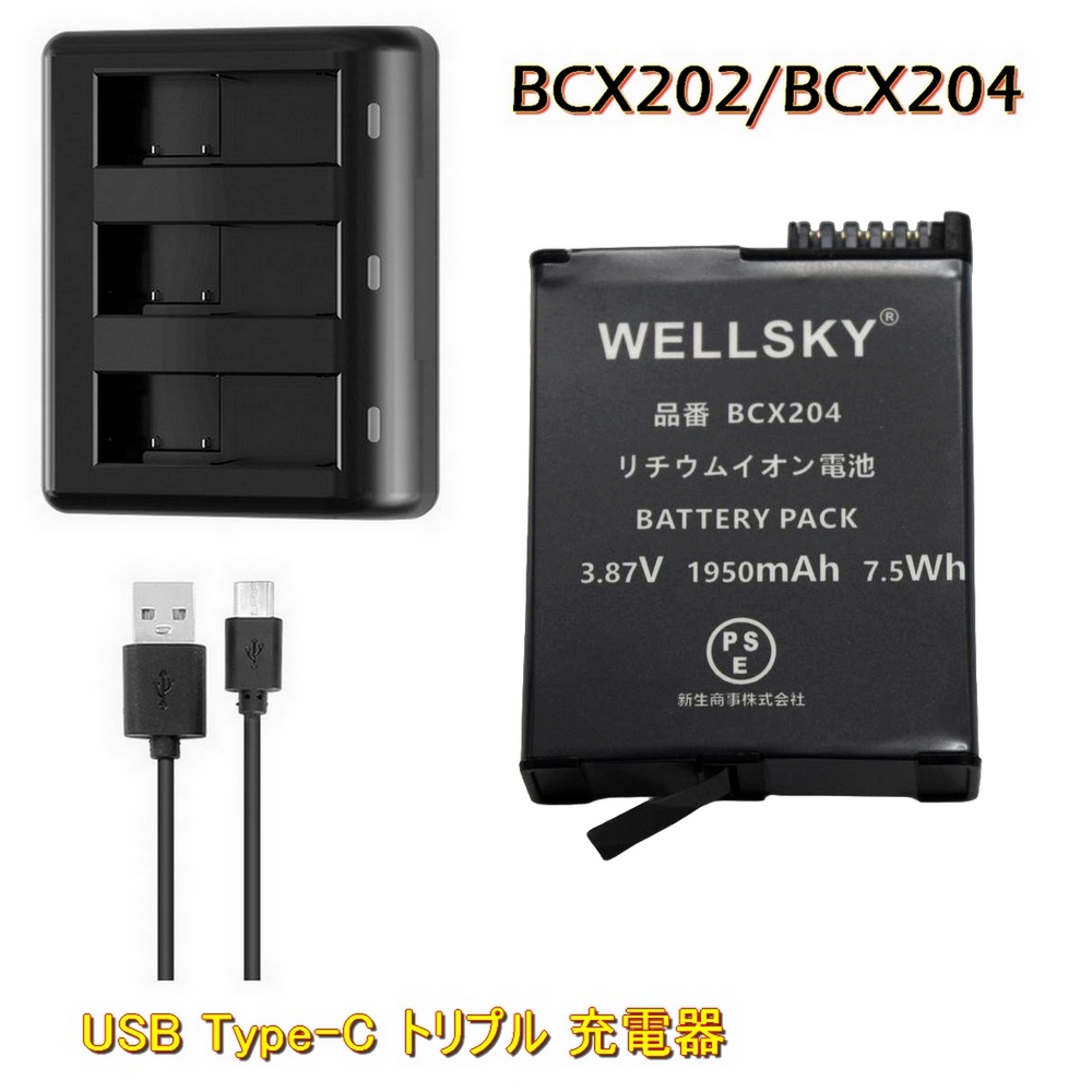 BCX204 BCX202 互換バッテリー 1個 + トリプル USB 互換充電器 1個 純正品と同じよう使用可能 DJI Osmo Action 3 Osmo 360 Osmo Action 6