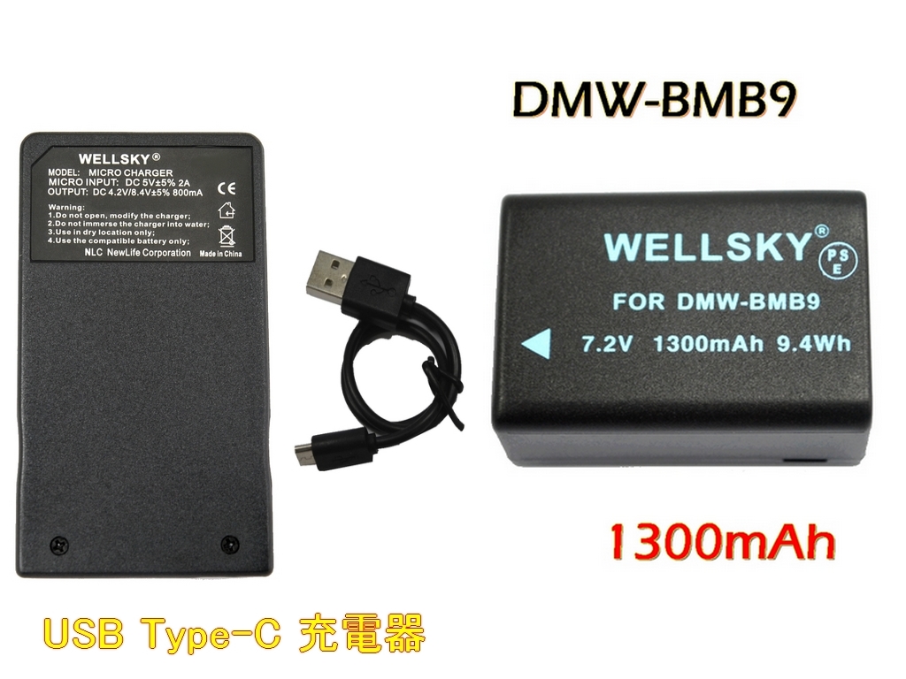 DMW-BMB9 互換バッテリー 1300mAh 1個 + DMW-BTC4 [ 超軽量 ] USB 互換充電器 バッテリーチャージャー 1個 Panasonic パナソニック