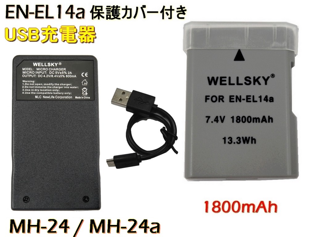 EN-EL14a EN-EL14 互換バッテリー 1個 & MH-24 MH-24a 超軽量 USB Type C 急速 互換充電器 バッテリーチャージャー 1個 NIKON ニコン