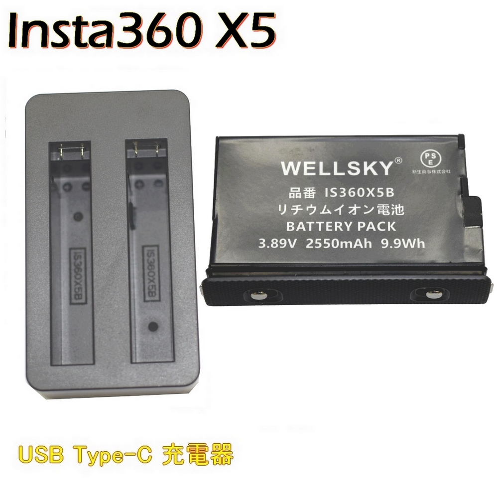 Insta360 X5 用 互換バッテリー IS360X5B 1個 + デュアル 超軽量 USB Type-C 充電器 1個 [ 2点セット ]