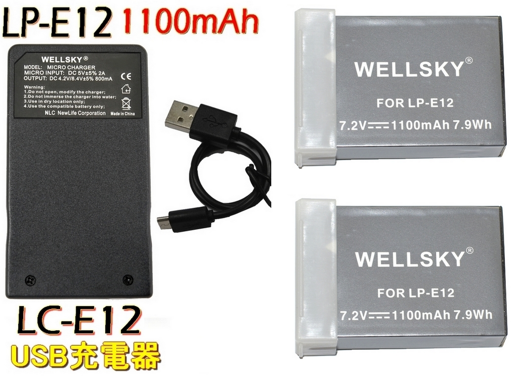 互換可能バッテリー: Canon キヤノン LP-E12 電圧: 7.2V 容量: 1100mAh 2個