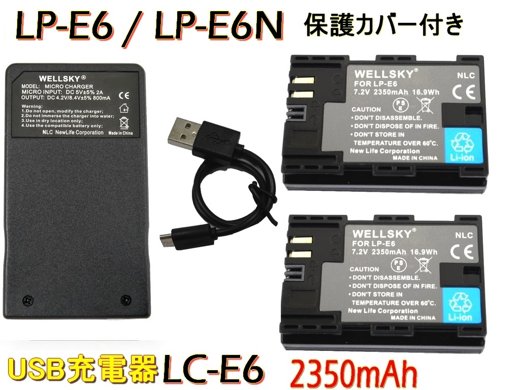 互換可能バッテリー: Canon キヤノン LP-E6 / LP-E6N / LP-E6NH 電圧: 7.2V 容量: 2350mAh 2個
