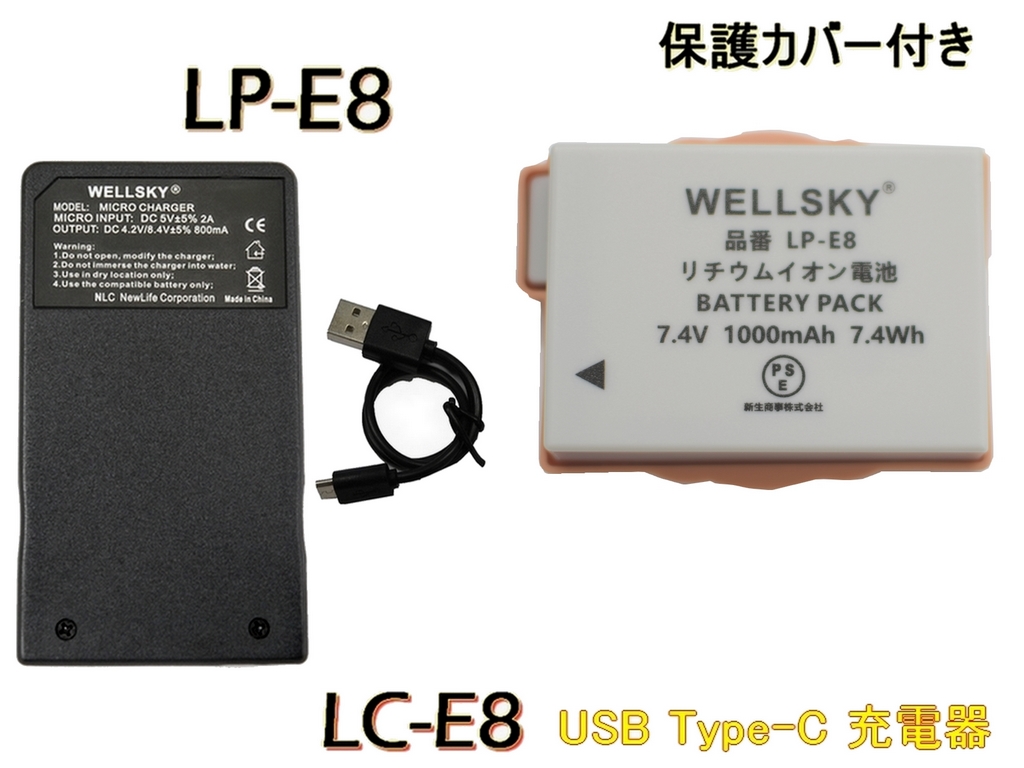 LP-E8 互換バッテリー 1個 + [ 超軽量 ] USB Type-C 互換充電器 バッテリーチャージャー LC-E8 1個 Canon キヤノンイオス EOS