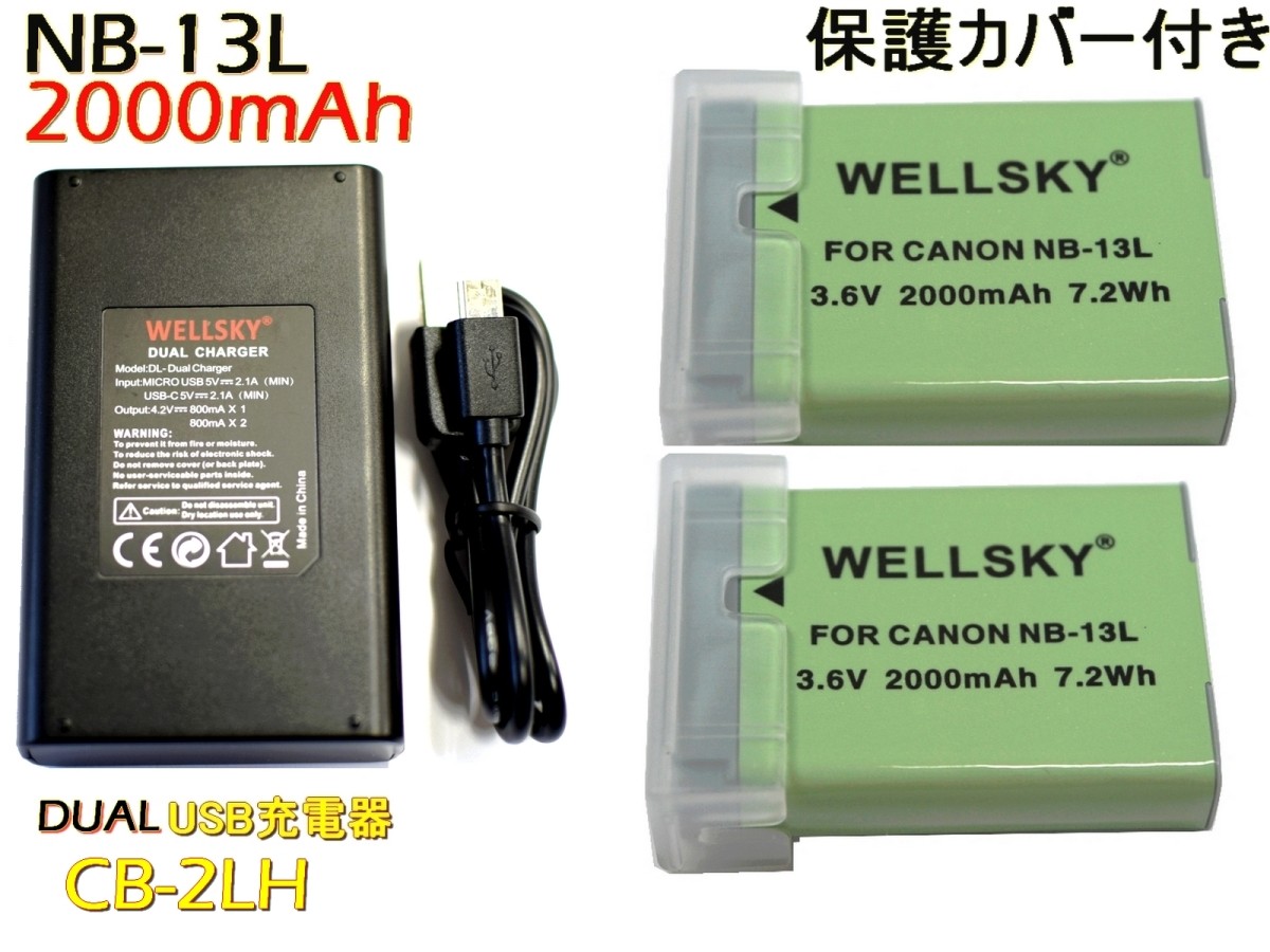 NB-13L 互換バッテリー 2個 + [ デュアル ] USB Type-C 互換充電器 バッテリーチャージャー CG-2LH 1個 CANON キヤノン