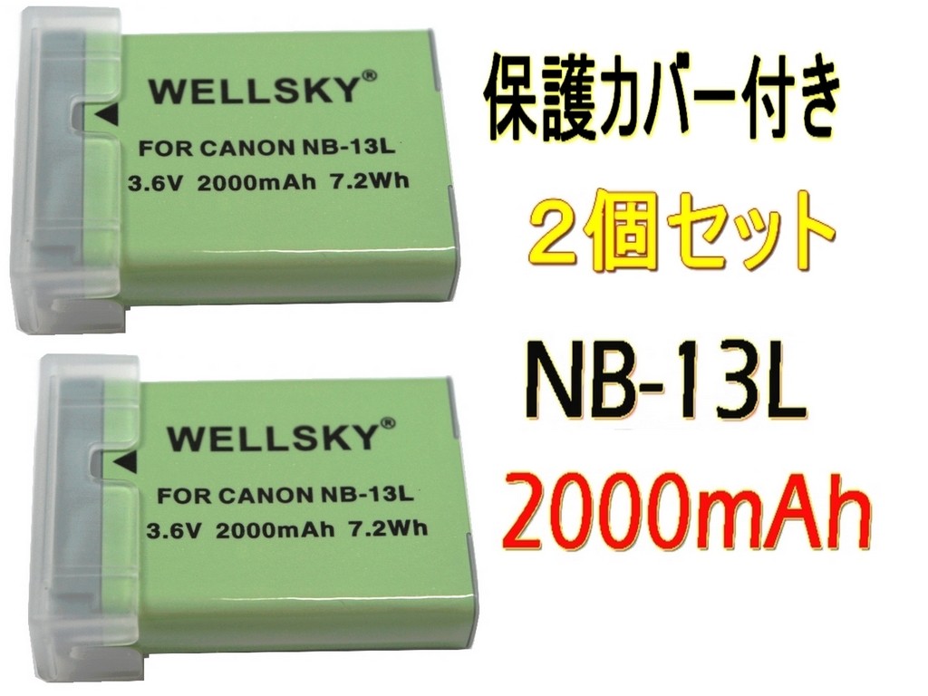 NB-13L 互換バッテリー 2個 [ 純正品と同じよう使用可能 端子保護カバー付き ] CANON キヤノン