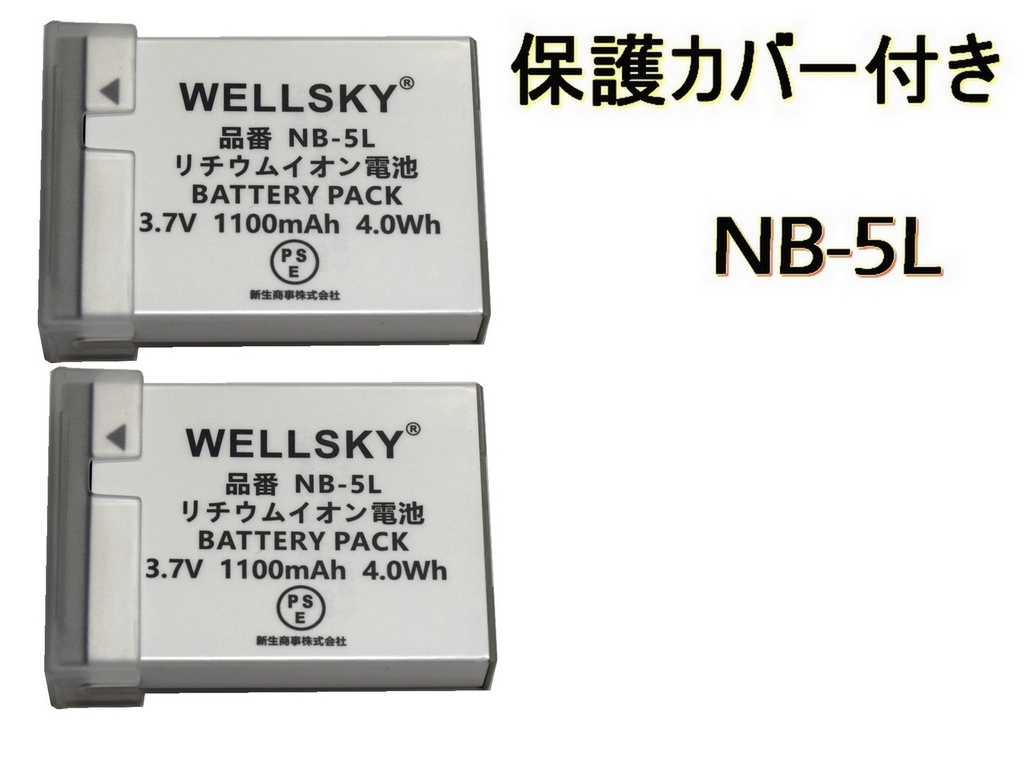 NB-5L 互換バッテリー 2個 [ 純正品と同じよう使用可能 端子保護カバー付き ] CANON キヤノン