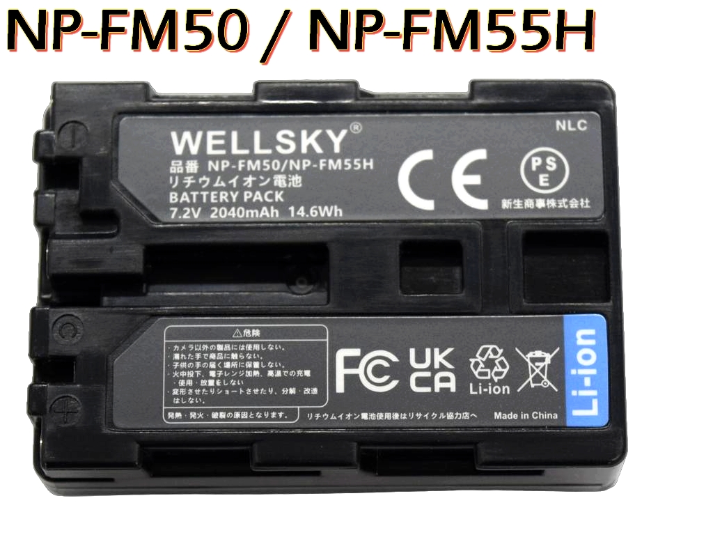 互換バッテリー: SONY ソニー NP-FM30 / NP-FM50 / NP-FM55H 電圧: 7.2V 実稼働容量: 2040mAh 1個