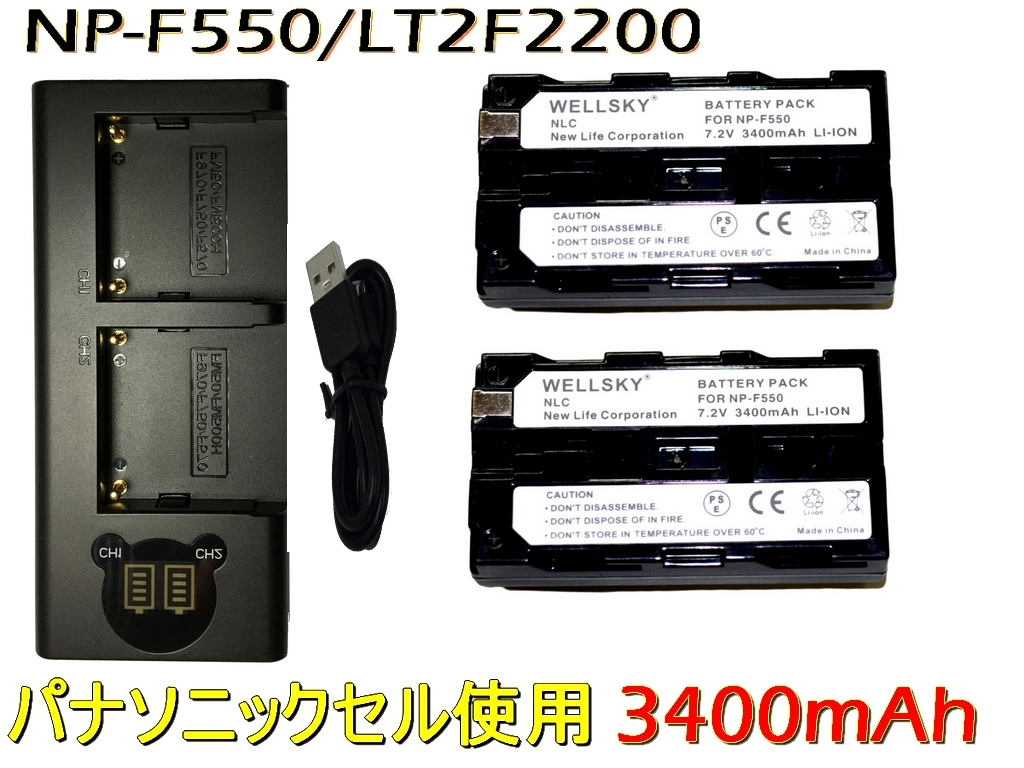 新品◆ NP-F550 / LT2F2200 ◆対応互換大容量バッテリー 2個