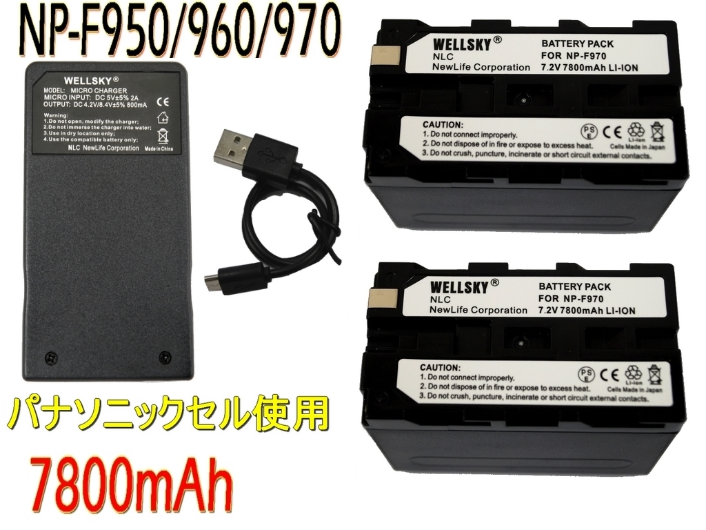 NP-F950 NP-F970 NP-F960 [パナソニックセル] 互換バッテリー 2個 & 超軽量 USB Type C BC-VM10 急速 互換充電器 バッテリーチャージャー 1個 SONY ソニー