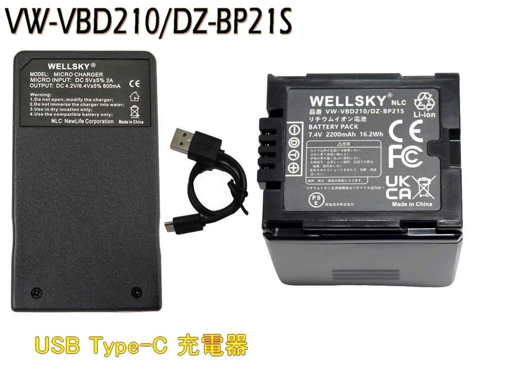 VW-VBD210 VW-VBD070 互換バッテリー 1個 + [ 超軽量 ] USB Type C 互換充電器 バッテリーチャージャー 1個 Panasonic パナソニック