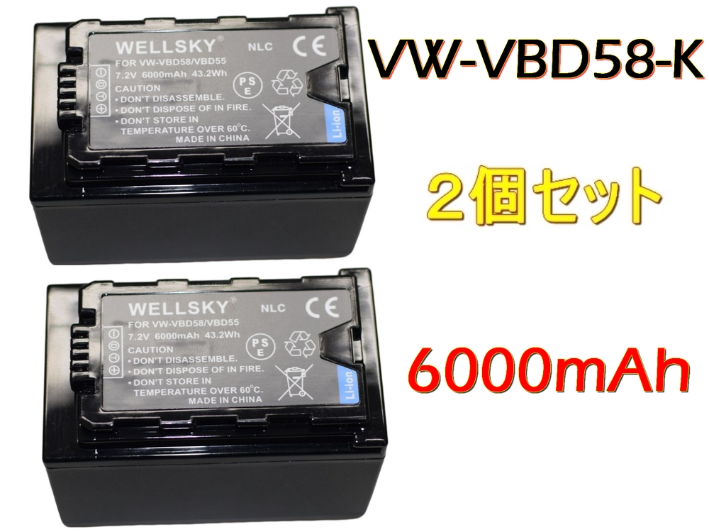 新品 Panasonic パナソニック VW-VBD58-K / VW-VBD58 互換バッテリー 2個