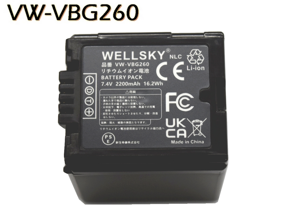 新品 Panasonic VW-VBG260-K / VW-VBG260 互換バッテリー 1個
