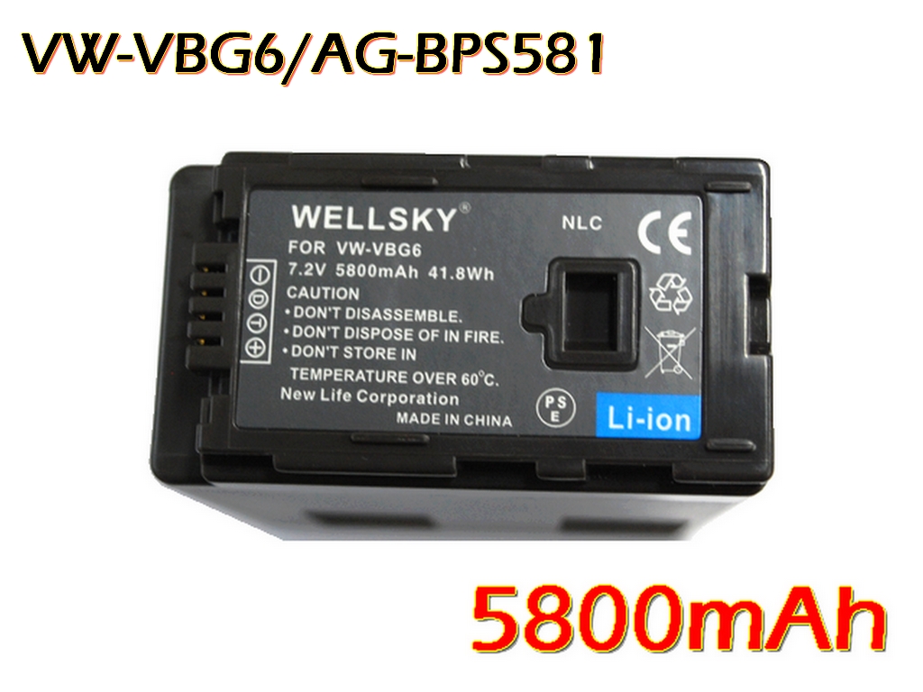 新品 Panasonic パナソニック VW-VBG6-K / VW-VBG6 / AG-BPS581 互換バッテリー 1個