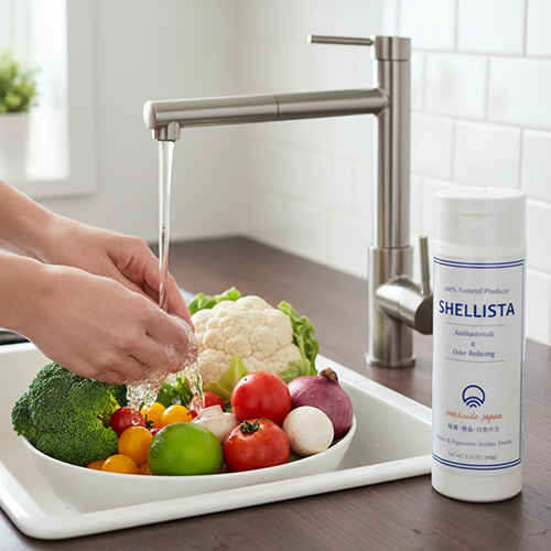 野菜洗い 果物洗い 洗剤 ほたて貝殻パウダー SHELLISTA (シェリスタ) ホタテ貝殻 100g 無添加 農薬除去 哺乳瓶 キッチン用除菌剤