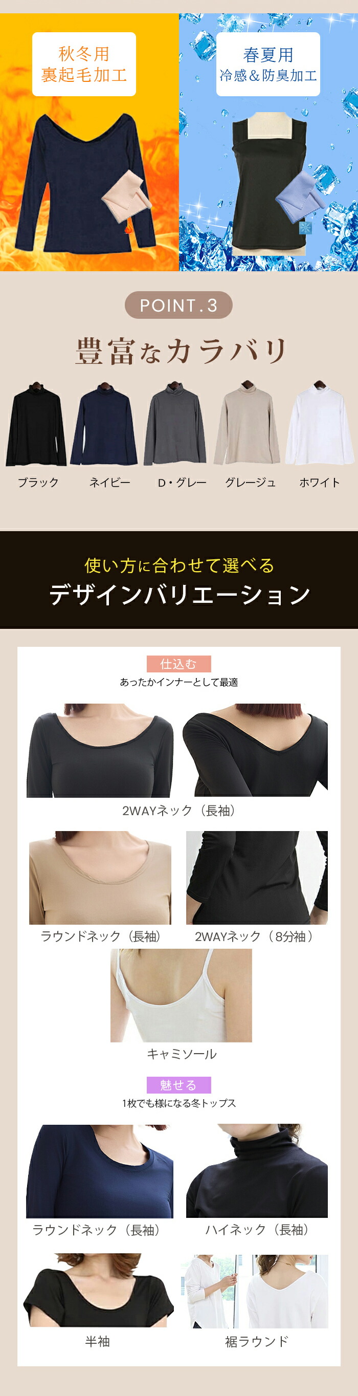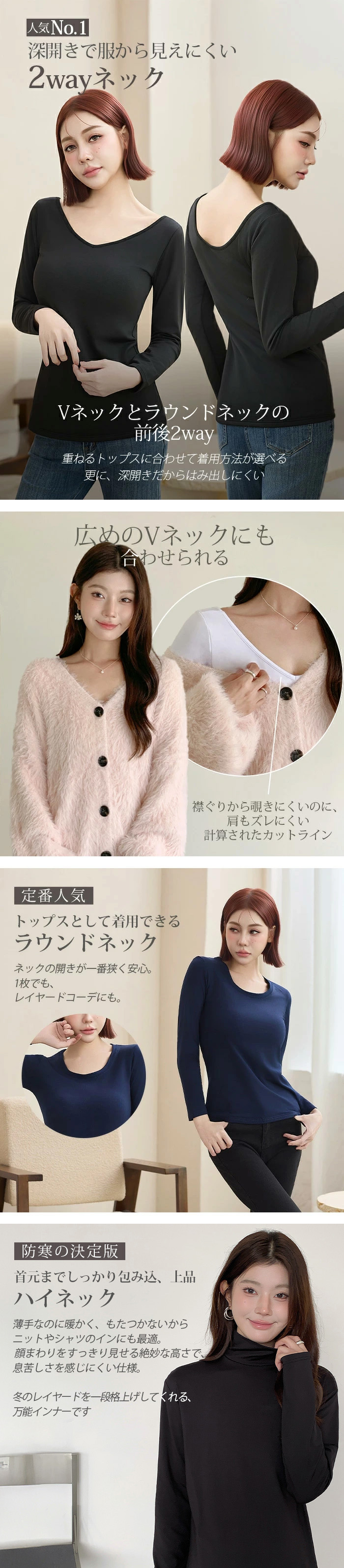 タイプ展開:2wayネック/表に響かないラウンド/ラウンドネック/ハイネック