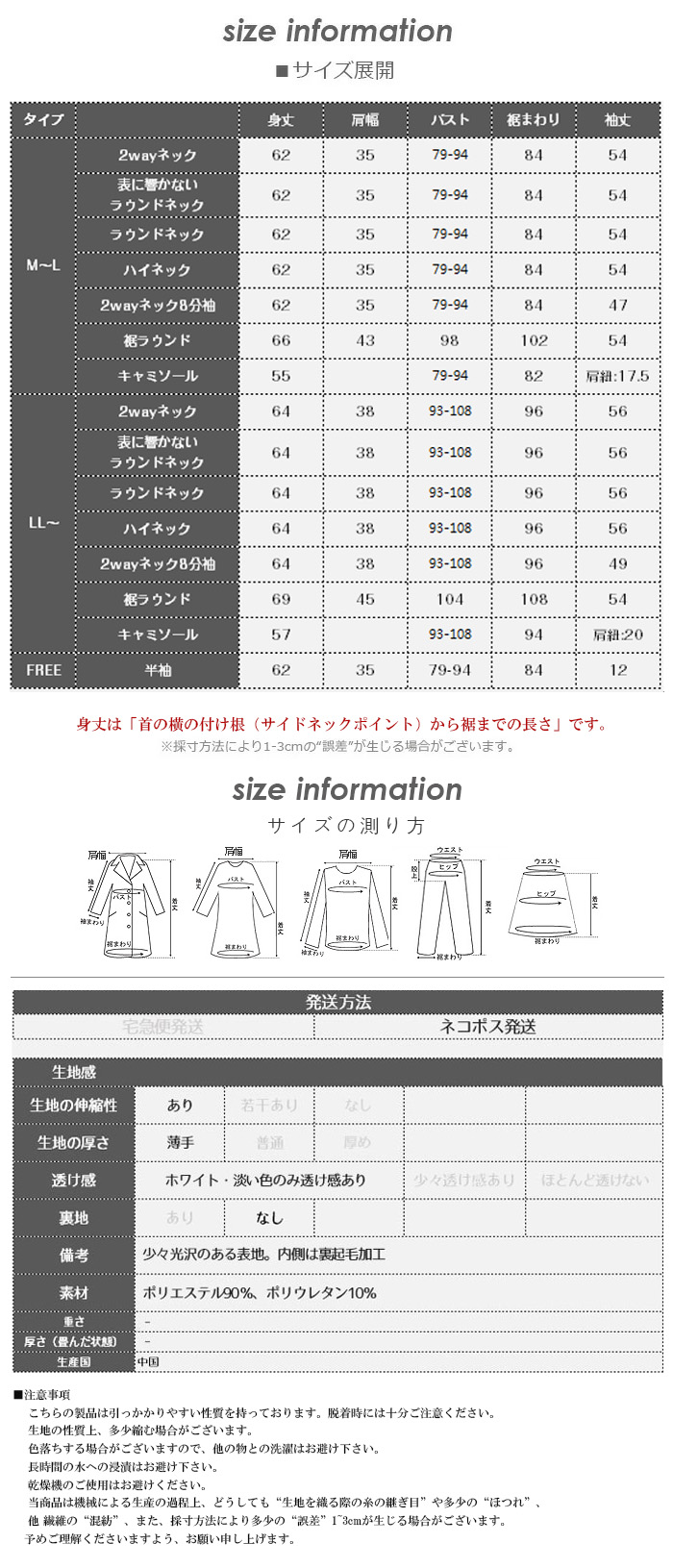 サイズ展開:M~L/LL~