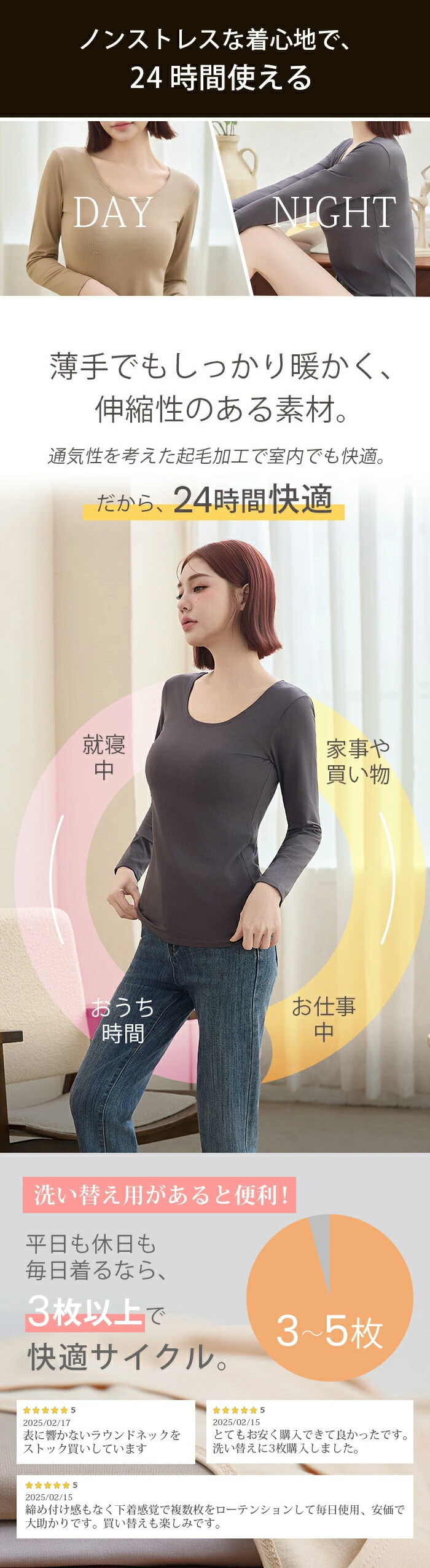 ノンストレスな着心地で、24時間使える。