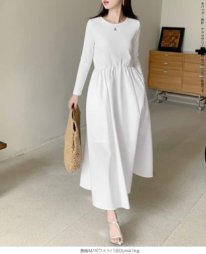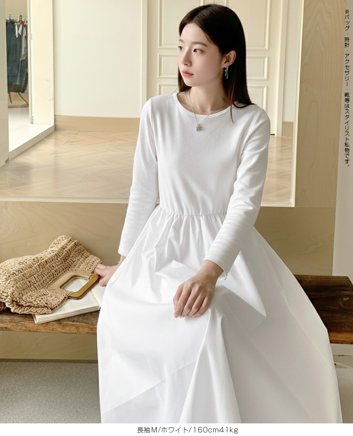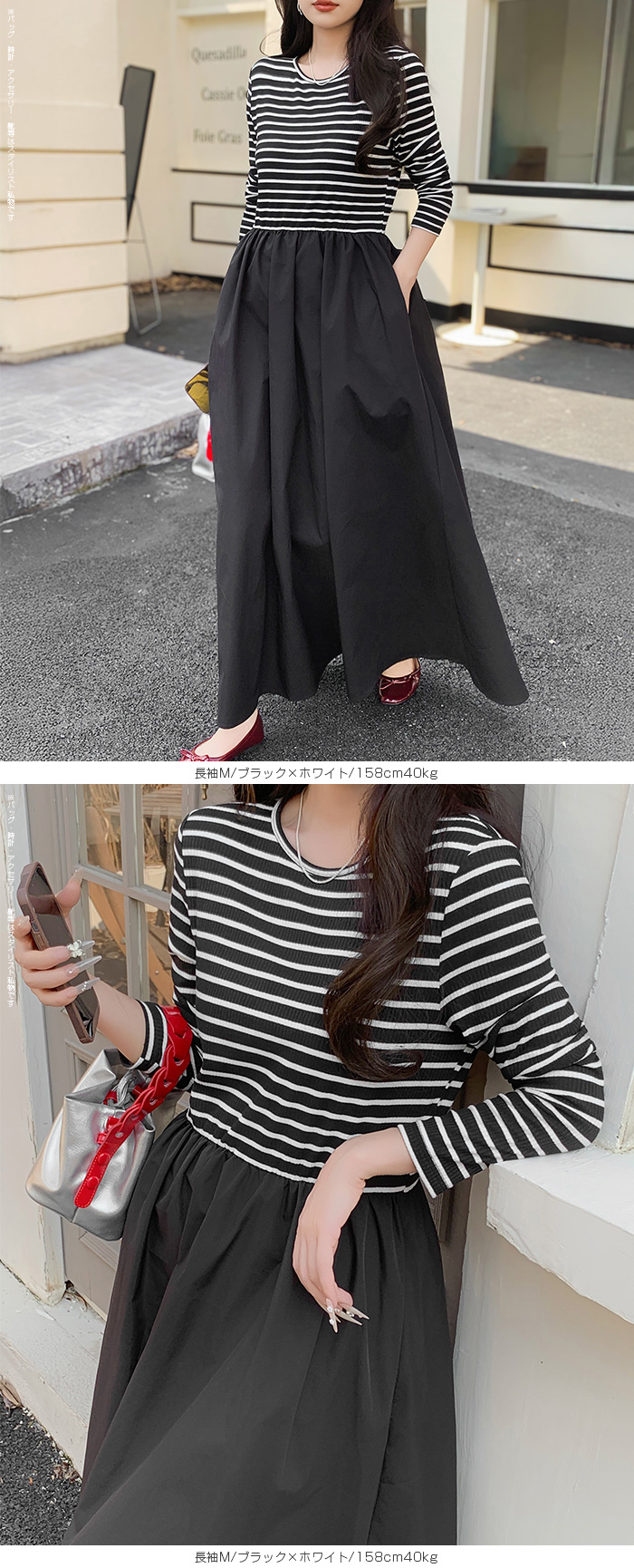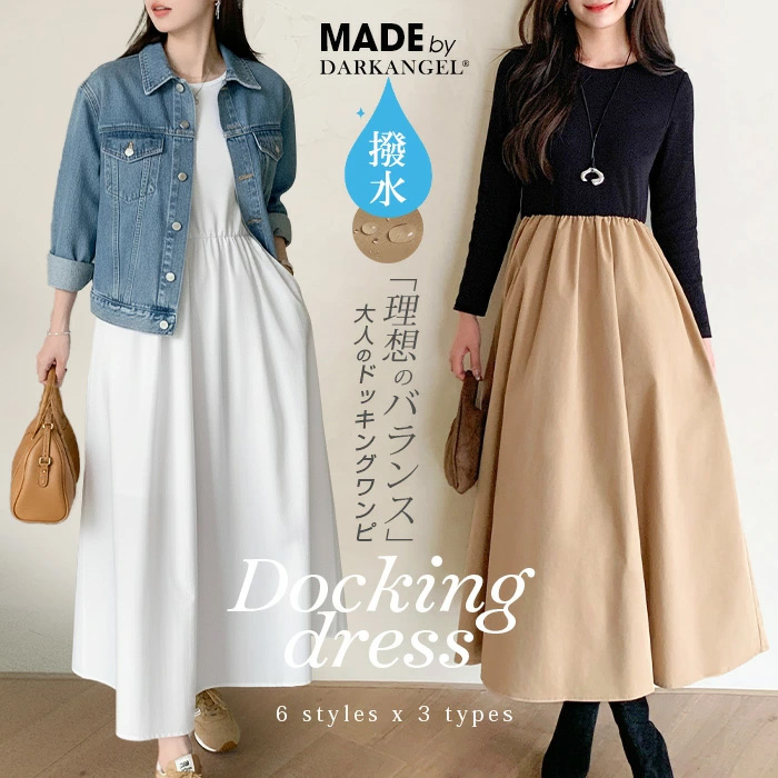**長袖 or 半袖 or ノースリーブ のドッキングワンピース**