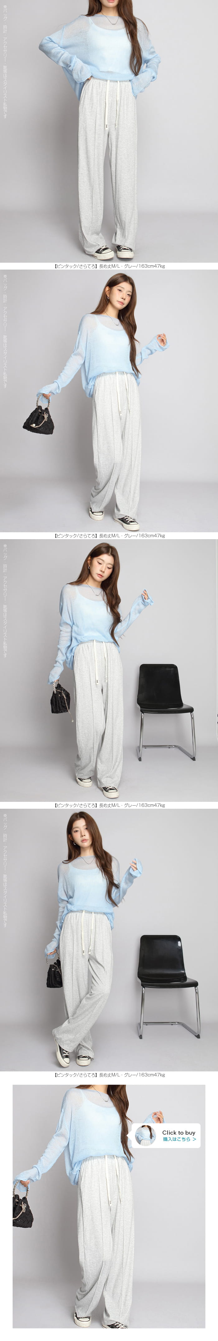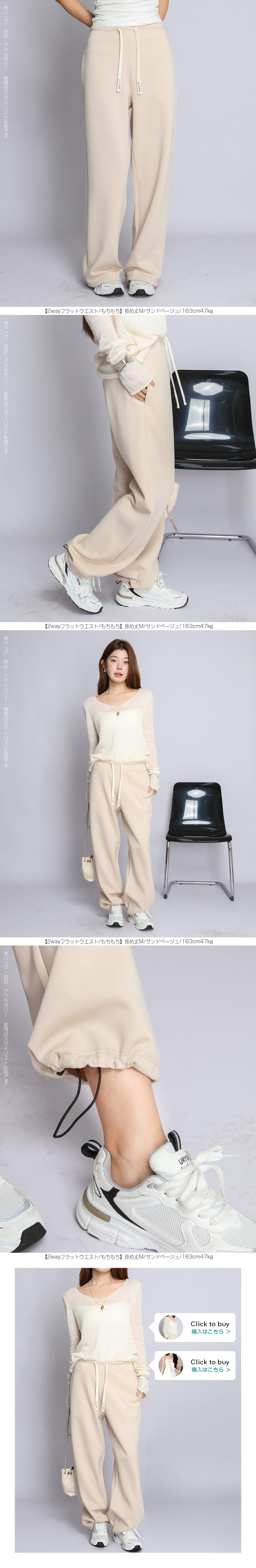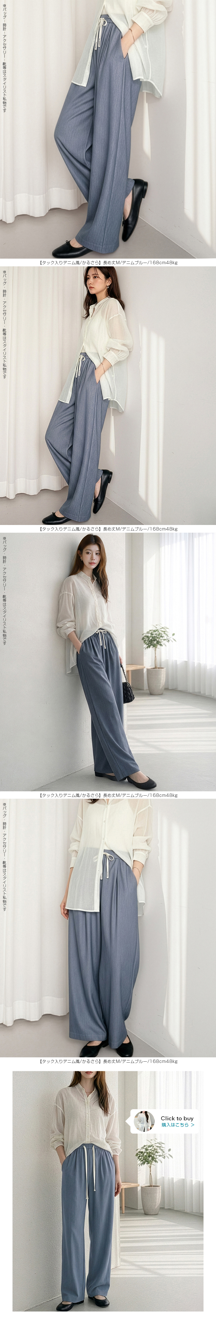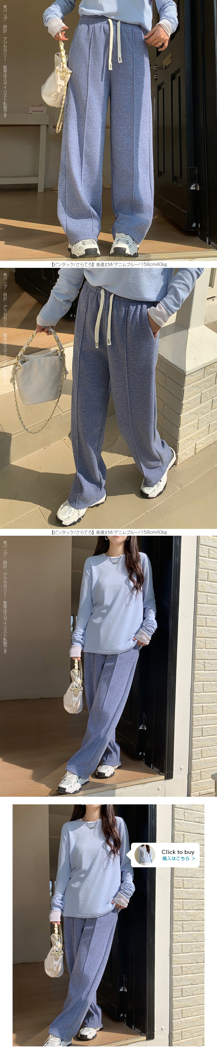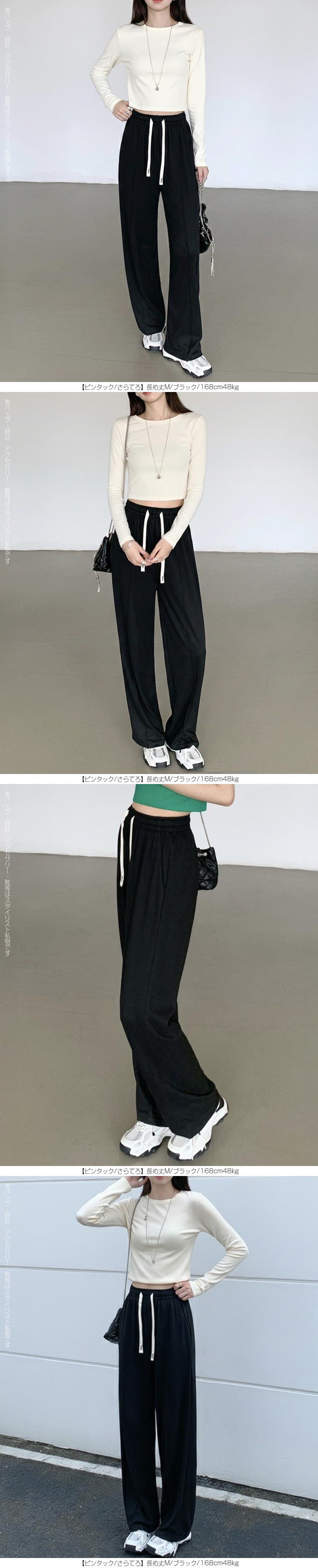 【 選べる丈&素材タイプイージーワイドパンツ 】 人気のイージーワイドパンツ。 もちもち素材の2way、フラットウエストですっきり穿けるタイプ、 もちもち素材にダブルウエストデザインのレイヤード風タイプ、 やわらかもちもちリブ素材、ピンタックデザインタイプ タック入りデニム風のかるさら素材など、選べるデザイン展開。 楽ちんなのにだらしなく見えず、ワンマイルウェアとしても活躍。 1枚持っておくと便利なデイリーアイテムです。 《商品ポイント》 ・2wayフラットウエスト / もちもち フラットウエストでスッキリした印象。 裾のドローコードでワイド→ジョガーの2wayシルエットが楽しめます。 ・ダブルウエスト / もちもち レイヤード風のダブルウエストデザインで、トレンド感のあるカジュアルスタイルに。 ・ピンタック / さらてろ センターピンタック入りで脚をまっすぐきれいに見せる美脚デザイン。 ・タック入りデニム風 / かるさら フロントタック入りで立体感のあるシルエット。 デニム風の見た目ながら軽くさらっとした着心地が魅力。 《デザイン》 ワイドストレートシルエットで脚のラインを拾いにくく、体型カバーにも◎。 柔らかく落ち感のある素材で、動くたびきれいなシルエットを演出します。 《コーディネート》 カジュアル:Tシャツやスウェット+スニーカーでデイリーに。 きれいめ:シャツやブラウスをタックインして大人コーデに。 スポーティ:キャップやナイロンジャケットでアクティブに。 ワンマイル:ラフだけどこなれ感のあるスタイルにも◎。 |