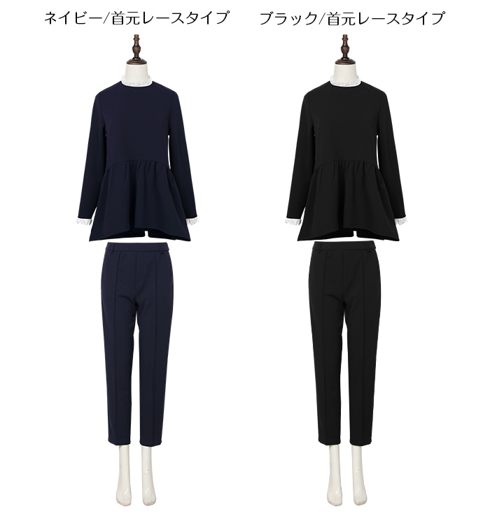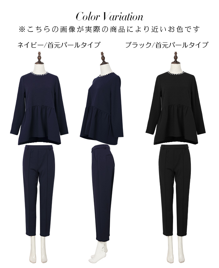 | 【 選べる2タイプペプラムセットアップ 】 襟元のデザインが選べるペプラムセットアップ。 王道のペプラムトップスに美シルエットのテーパードパンツで 360°美しいスタイルを叶えます。 トップスはペプラムデザインで気になる腰回りを自然にカバーしてくれます。 またウエスト位置の切り替えによってスタイルも良く見えてしまう優秀アイテム! 襟元に華やかなデザインがあり単品使いしたく成る可愛さ。 アクセサリー要らずで、華やかに仕上げてくれます。 パンツはベーシックなテーパードパンツでフォーマルにもデイリーにもご使用いただけます。 センタープリーツは脚をまっすぐ綺麗にみせてくれるのが嬉しいポイント! 後ろの一部をゴム仕様にすることにより、 シルエットにこだわりながらストレスフリーな履き心地を実現。 とろみのあるポンチ素材はご家庭で洗濯可能なのも嬉しいポイント! 春から初夏にかけては、卒業式や入学式などのお子さまの大切な行事や、 参観日などの学校行事や同窓会、結婚式やお葬式などの冠婚葬祭だけでなく オフィスカジュアルなど、オールシーズンどのようなシーンにもお使いいただけます。 |
