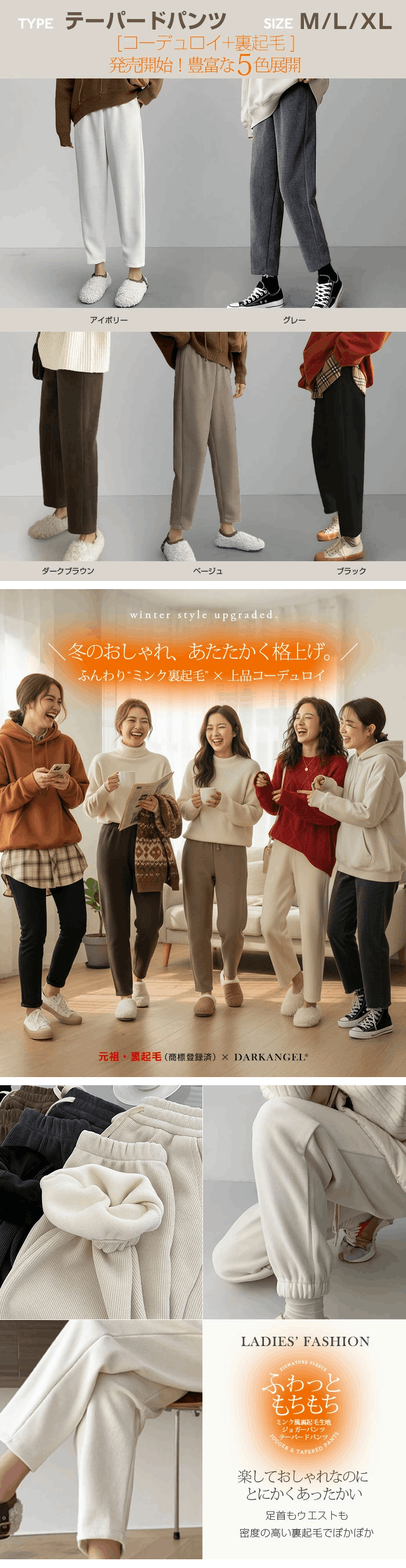 | アイボリー/ブラック/グレー/ベージュ/ダークブラウン/サンドベージュ/ダークグレー/ ダスティピンク/ 杢グレー |