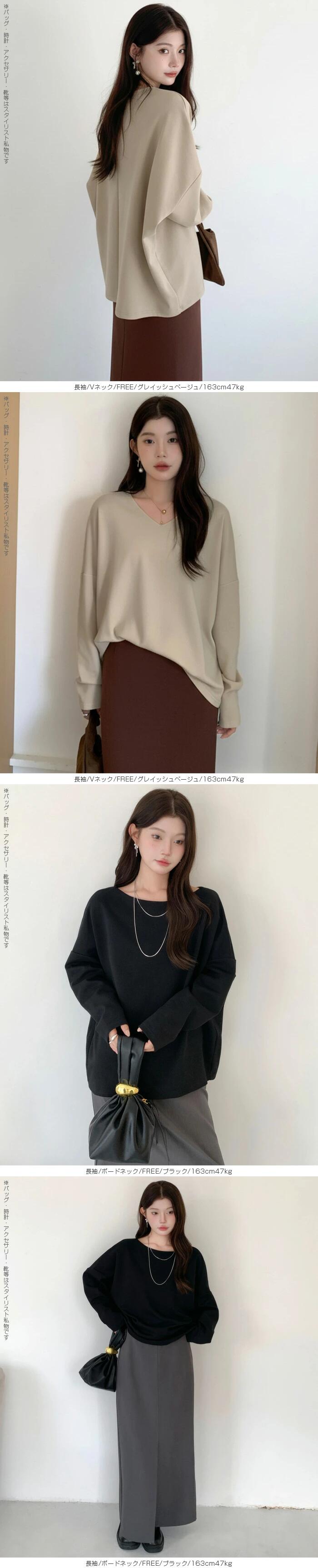 シンプルながらもトレンド感たっぷりの コクーントップス長袖タイプ が登場しました。 ゆったりとしたシルエットと落ち感のあるドルマンスリーブが、 気になる二の腕やウエスト周りを自然にカバーし、 着るだけでこなれ感を演出。 選べる 2ネックデザイン で、 好みやシーンに合わせて着こなしを楽しめます。 柔らかく伸縮性のあるカットソー素材で、 動きやすくデイリー使いに最適。 きれいめにもカジュアルにも着回せる万能トップスは、 オンオフ問わず幅広く活躍してくれます。 《商品ポイント》 長袖追加タイプで秋冬にぴったり Vネック&ボートネックの2デザインから選べる ゆったり コクーンシルエットで体型カバー ドルマンスリーブで抜け感のあるおしゃれ見え ベーシックカラー展開で着回し力抜群 《デザイン・シルエット》 ゆるっとしたドルマンスリーブで華奢見え効果 裾に向かってやや丸みを帯びたコクーンライン ボリューム感がありながらも落ち感素材でスッキリ シンプル無地デザインで大人カジュアルに最適 《コーディネート提案》 デニムと合わせてカジュアルに タイトスカートと合わせればきれいめオフィスコーデ ワイドパンツと合わせてリラックススタイルに ショートネックレスやロングアクセで首元の印象チェンジも◎ |