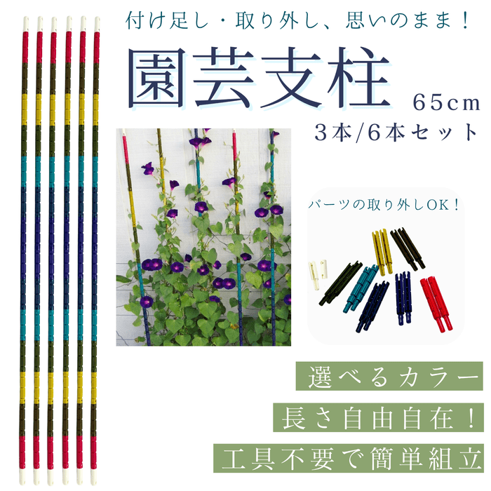 選べる3本セット/6本セット】支柱 組立式 65cm ブロック 園芸用 つなげる 工具不要 自由自在 朝顔 クレマチス つる性植物 観葉植物 鉢植え プランター 送料無料