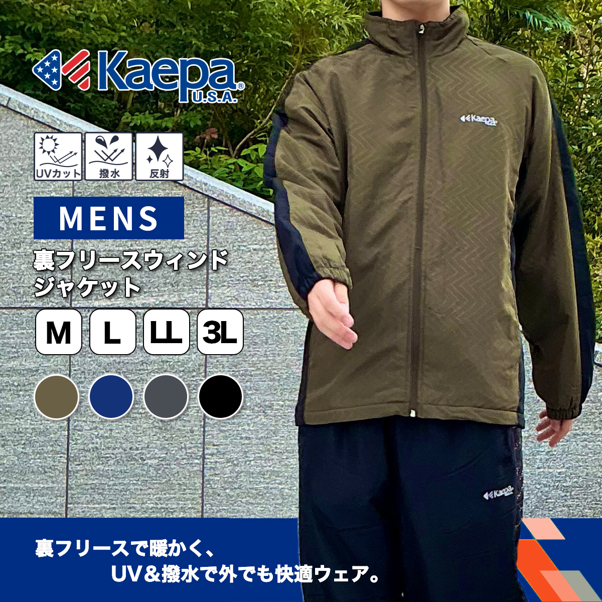 | ★Kaepa ■裏フリースウィンドジャケット 【ブランド説明】 Kaepa U.S.A.は1975年に誕生したアメリカのスポーツシューズ発信のブランドです。アメリカでは、ミシガン大学・フロリダ州立大学に代表されるカレッジチアリーディングの強豪チームのオフィシャルサプライを行い、またアトランタオリンピック開催時には、USバレーボール・ナショナルチームの公式シューズサプライヤーに選ばれるなど、チアリーディング、バレーボールのカテゴリーにおいて高いブランド認知度を誇っています。ロゴカラーのブルー、レッドに象徴される AMERICAN FEATURED SPORTS のスピリットのもと、「Love Sports !」「Setting Your Perfect Lifestyle.」をコンセプトに掲げ、心も体も健康で豊かなライフスタイルを提案します。 【商品特徴】 ・運動やウォーキング、作業時等、様々な場面で快適にご着用いただけます! ・快適な着心地でスポーツにも最適です! ●様々なシーンで着回し抜群!● 【着用シーン】 スポーツ/サイクリング/ウォーキング/ハイキング/登山/庭作業/リラックスウェア 季節:冬 【素材/機能】 ・厚さ:厚手 ・裏地:フリース ・起毛:なし ・手触り:サラサラ ・機能:UV対策/撥水/反射 |