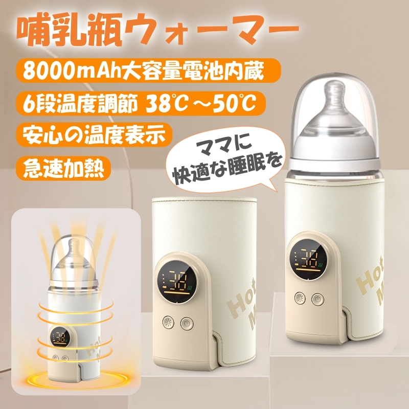 | 特徴 | ★8000mAh大容量バッテリー内蔵 ★6段階温度調節【38度/40度/42度/45度/48度/50度】 ★LED温度表示で一目で確認♪ ★マジックテープ止め式なので、様々なボトルに適用♪ ★急速充電で待たずに使える♪ ★多層構造&防水・耐汚素材♪ |