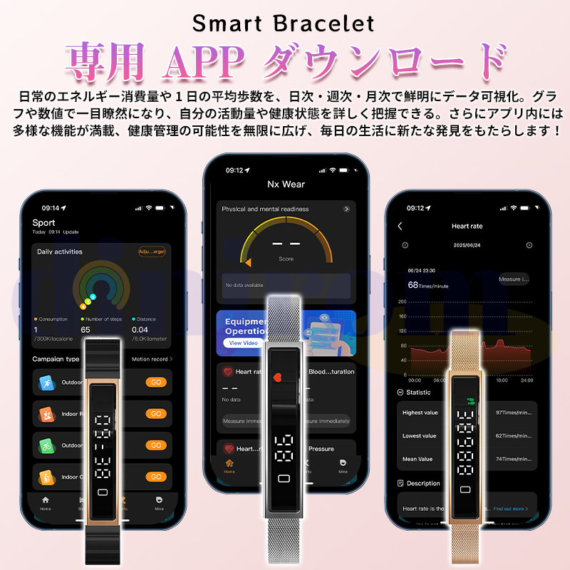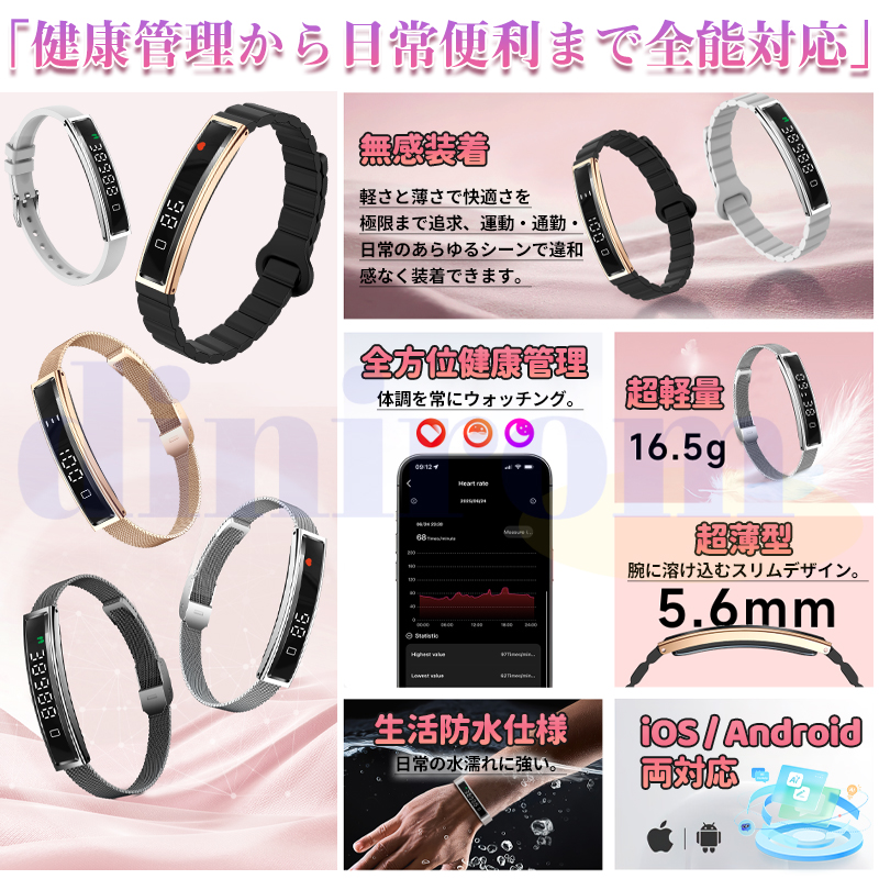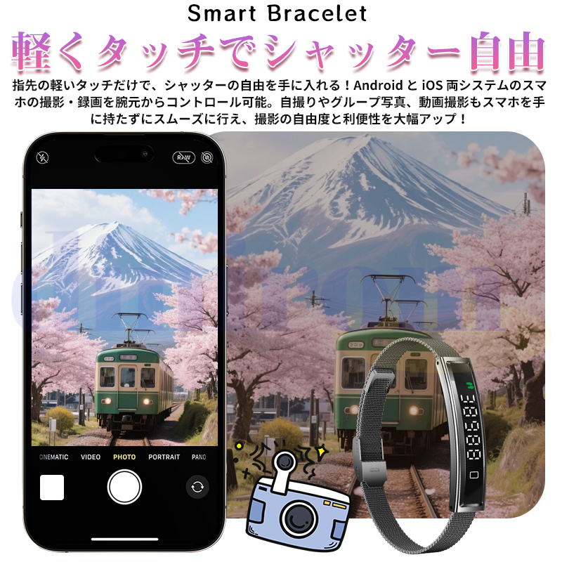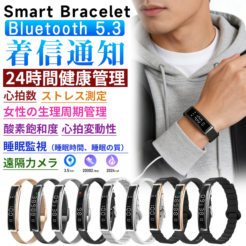 2026最新登場 スマートハンドリング 心拍数 血中酸素 24時間健康管理 超薄 超軽量 女性生理管理 睡眠管理 遠隔カメラ 万歩計 運動モード 着信表示 レディース