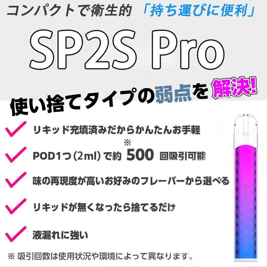 1.ニコチン・タール0で健康的にリフレッシュ:SP2S.VAPEは加熱式タバコのようなくせもなく非常に吸いやすいのが特徴です。 2.他では味わえない吸い応え:重量感のある水蒸気と濃厚なフレーバーで他では味わえない吸い応えを実現。3.いつでもどこでもリフレッシュ:タバコ臭0、副流煙0だから、他人に迷惑をかけずにいろいろなシーンで楽しめます。