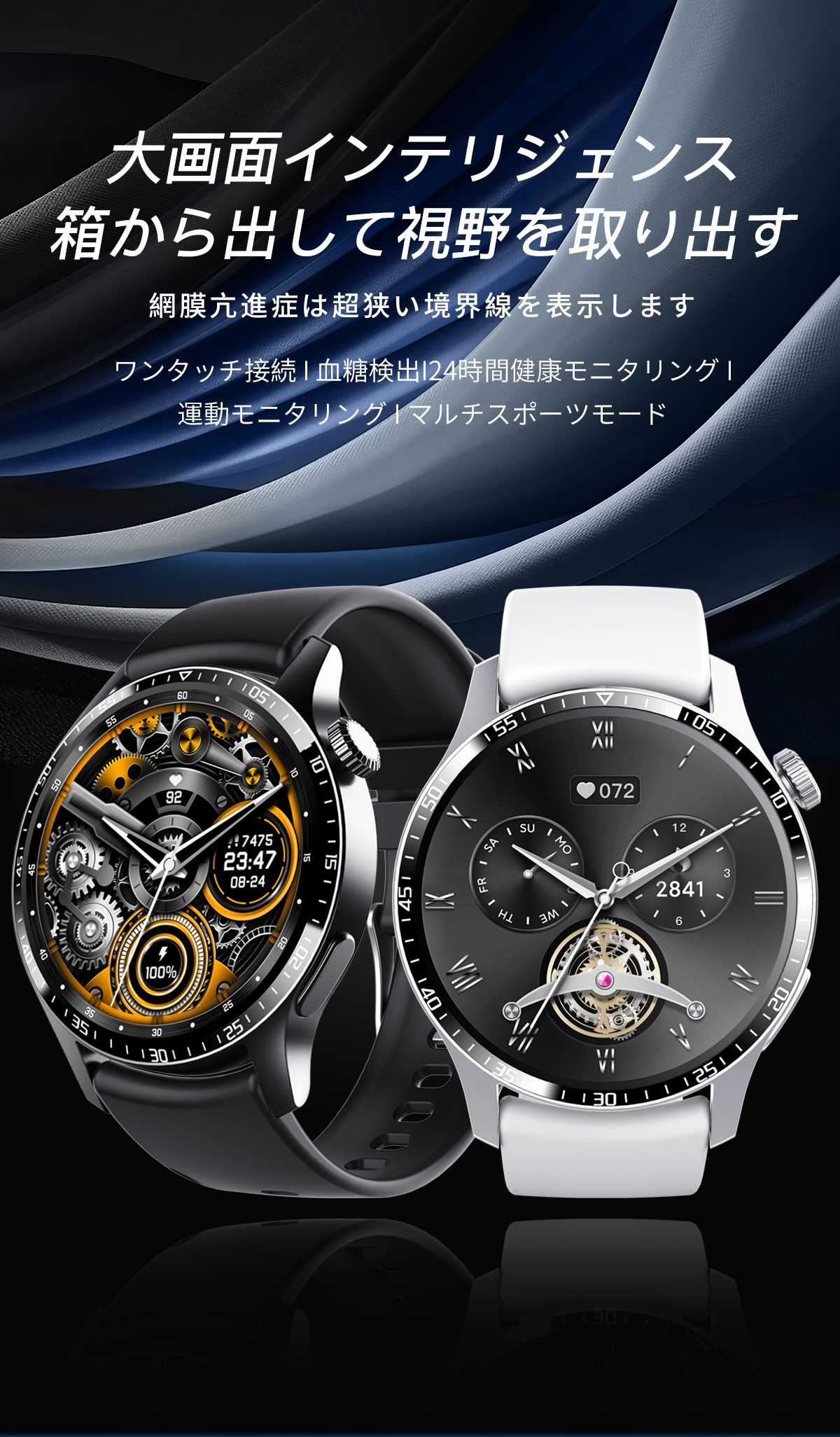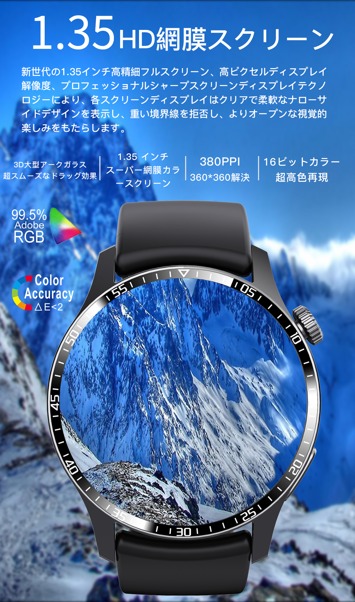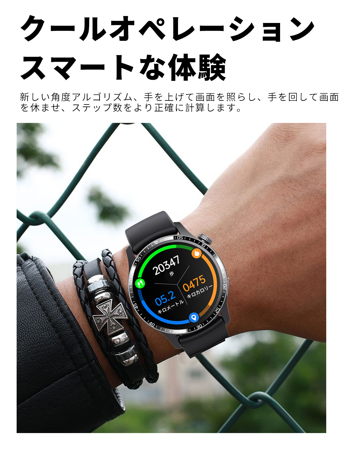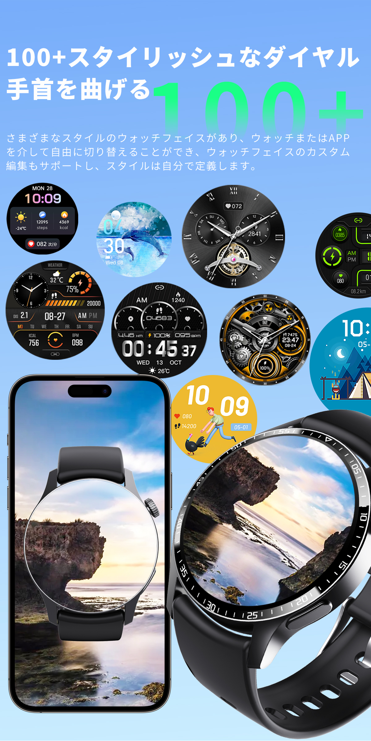 このスマートウォッチは360*360高解像度大画面を採用され、画質がより鮮明になり、より大きく高精度な大画面で文字を表示されます。例のない快適な視覚感と優れた操作感をもたらします。例のない快適な視覚感と優れた操作感をもたらします。本体の文字盤を搭載する以外、専用アプリで多種類文字盤を切り替えができるし、家族や恋人、アイドルなどの写真を文字盤の画面に変えることもできます。毎日のお気持ちによって、文字盤スタイルを取り替え可能。