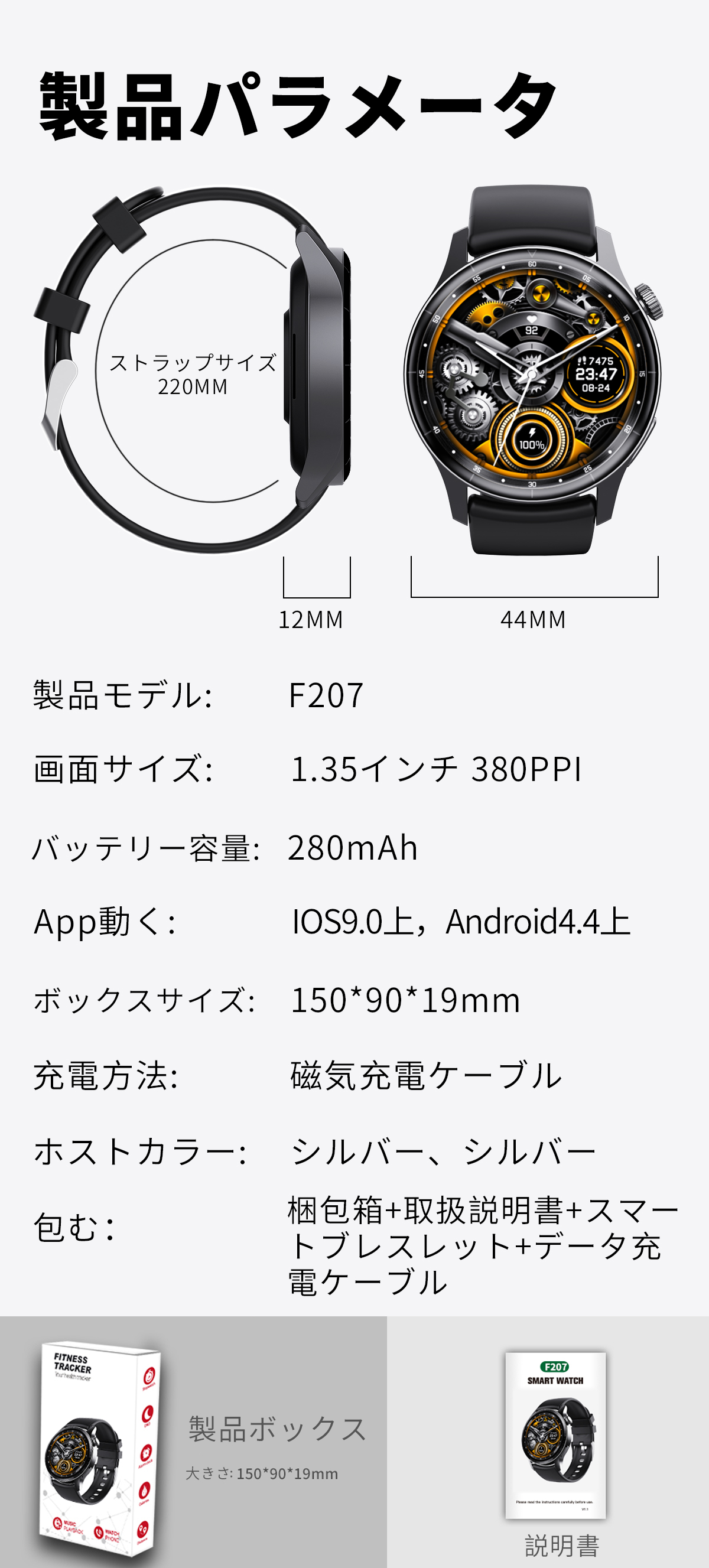 【安心のIP68防水・保証サービス・付属品】 スマートウォッチにIP68級防水及び防塵性能を持っており、日常生活の手洗いや洗顔の際も取り外す必要ありません。日常防水のため、水回りなどに関する仕事はウォッチを取り外してください。ご注意:※お風呂、温泉水や温泉の湯気及び高い水圧は故障の原因となります。また故障を避けるために、5V1Aの充電器を使用してください。出品者からのご購入いただいた商品が対象商品となり、ご購入日から3ヶ月の保証期間があります。商品に不具合があるか不明点がある場合、お気軽にご注文履歴から弊社までご連絡ください。付属品:スマートウォッチの本体*1、ベルト*1、充電ケーブル*1、日本語説明書*1