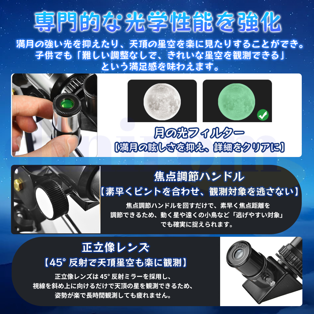 また、初心者と子供が自然と宇宙についての知識を学ぶ向けの天体望遠鏡です。