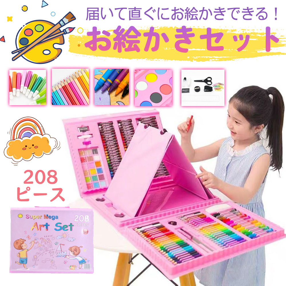 お絵描きセット 色鉛筆 クレヨン革新 208ピース 女の子 プレゼント アートセット 塗り絵 絵の具 絵画 文房具 子供ギフト 持ち歩き 入園 入学 卒園 誕生日 贈り物