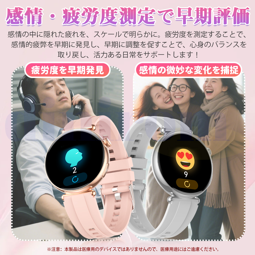 ●他にも通話機能、強い懐中電灯(4モード)、2.5DダイナミックUI、ストップウォッチ、カウントダウン、歩数計、カロリー、距離、運動モード、着信通知、腕上げ点灯、遠隔撮影、音楽制御、電卓、ゲーム、アラーム、SOSモード、座りがち注意などの多機能が搭載され、毎日の生活習慣の改善や日常健康管理に役立ちます