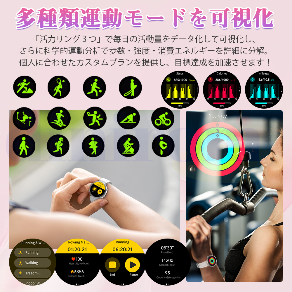 【多種類運動モード&多言語設定可能&音楽コントロール】