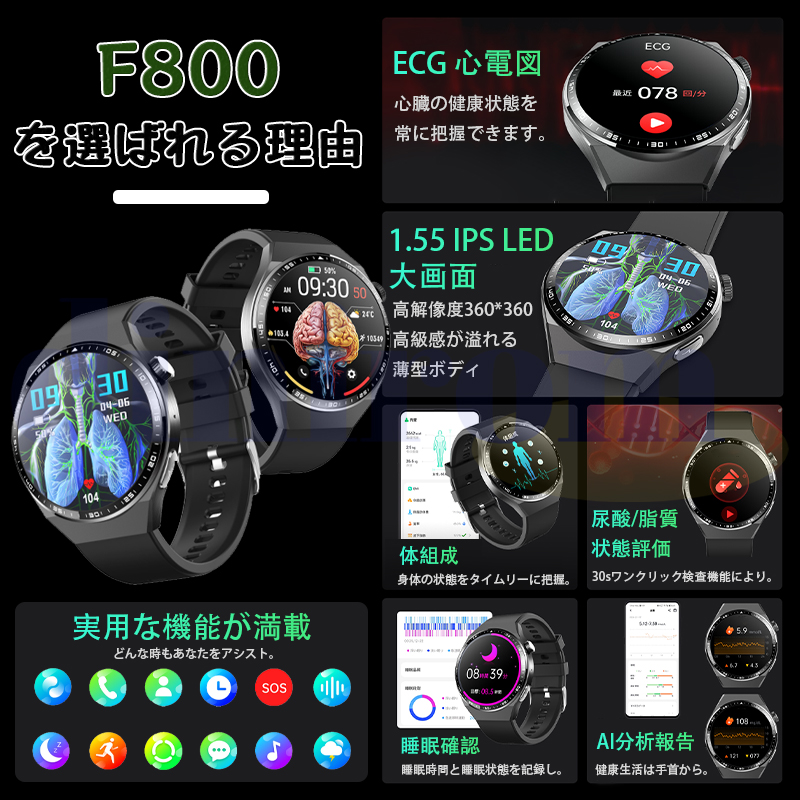 スマートウォッチ 医療レベル健康管理 ECG心電図 体組成 血液成分分析 bluetooth5.3通話 体温 心拍数 血中酸素 音楽制御 血圧 睡眠監視 歩数計 新登場