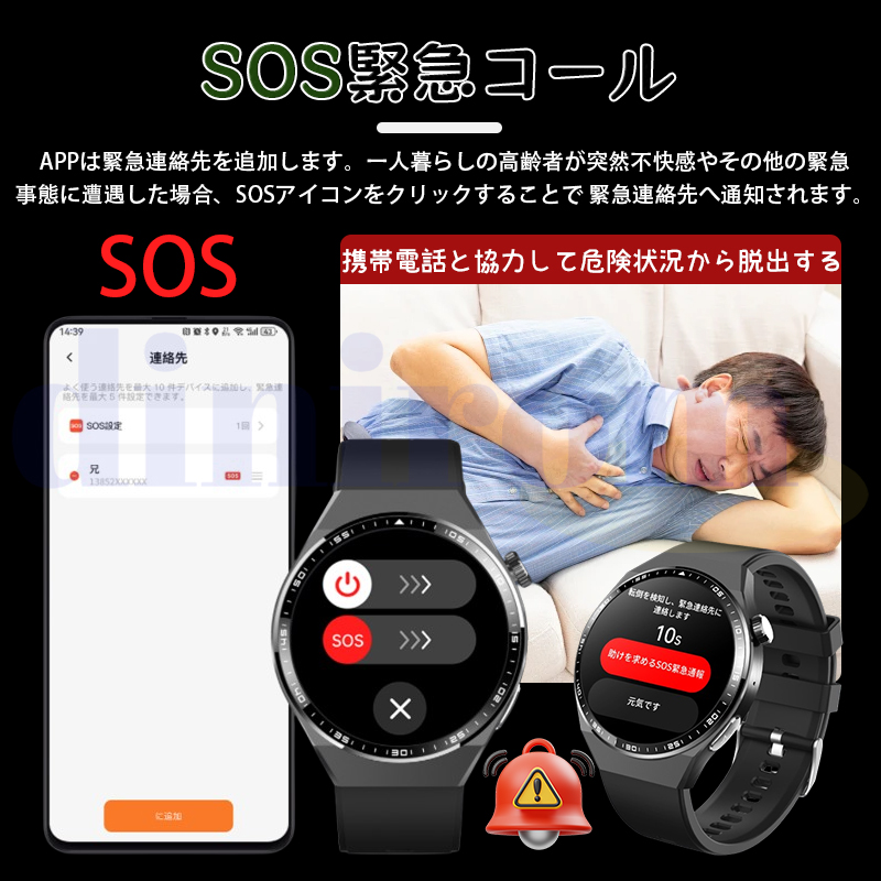 ECG心電図、AI心電レポート分析、医療レベル非侵襲的測定、気分検測、血液成分分析、24時間自動血圧測定、血中酸素、心拍数値、女性生理管理、圧力値などの測定機能搭載、ご自分に関わる機能搭載されており、常に気を配り、体調をより詳しく把握することができます。睡眠時間や睡眠の質を正確に計測できる、意識的にスケジュールや健康管理を改善します。また、電話/着信通知などの通知は、全部バイブレーションで通知されます。一切の大事な連絡を絶対に見逃しません。活動量計、歩数計、目覚まし時計、音楽制御/再生など実用な機能が備えます。