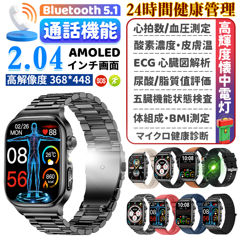 「五臓健康管理」スマートウォッチ 通話機能 ECG心電図 体温 血圧 血中酸素 心拍数 歩数計 気分 疲労度分析 血液成分 体組成分析 活動量計 睡眠 2026最新 感謝祭