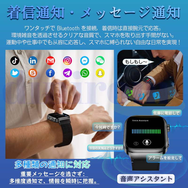 ●24H健康管理:通話可能、カロリー、アラート、睡眠監視などの測定機能付き