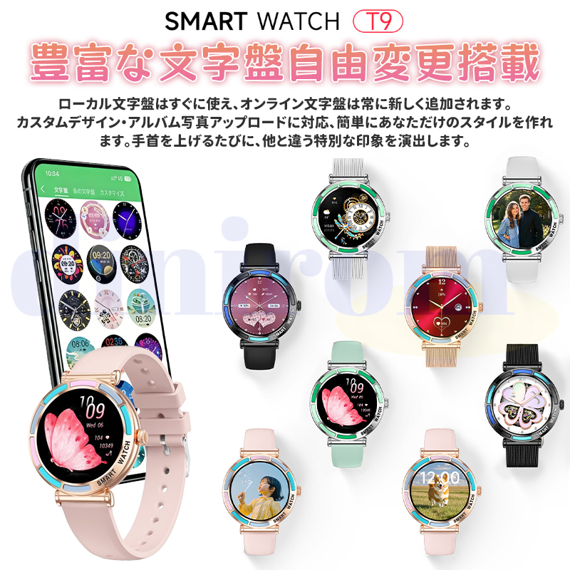 このスマートウォッチは360*360高解像度画面を採用され、画質がより鮮明になり、より大きく高精度な大画面で文字を表示されます。例のない快適な視覚感と優れた操作感をもたらします。例のない快適な視覚感と優れた操作感をもたらします。本体の文字盤を搭載する以外、専用アプリで多種類文字盤を切り替えができるし、家族や恋人、アイドルなどの写真を文字盤の画面に変えることもできます。毎日のお気持ちによって、文字盤スタイルを取り替え可能。