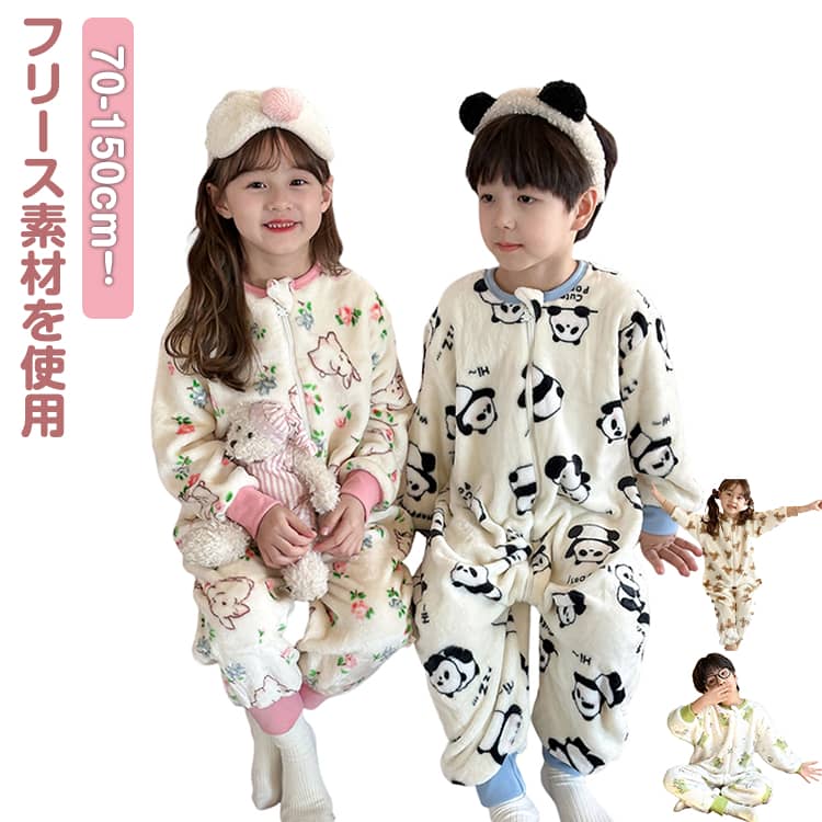 スリーパー 長袖 ふわふわ もこもこ 袖付き 前開き ナイトウェア ベビー リブ袖 袖付き パジャマ フリース キッズ ルームウェア 寝冷え対策 部屋