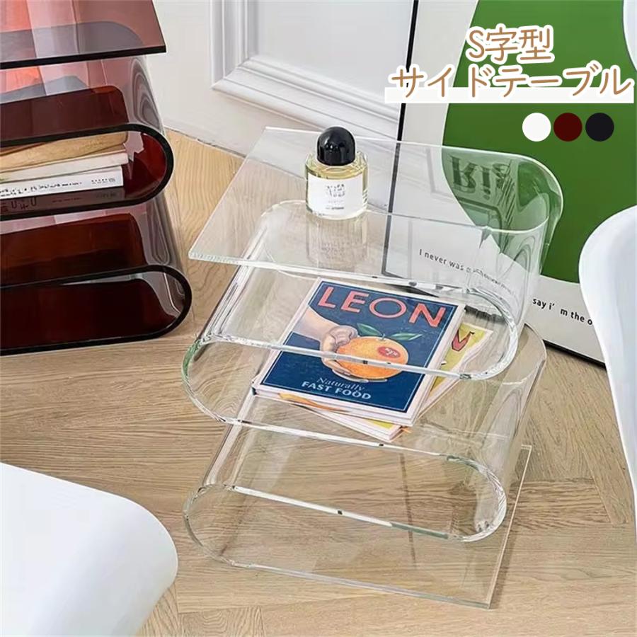 サイドテーブル アクリル S字型 透明 おしゃれ インテリア サイドテーブル ディスプレイテーブル おし