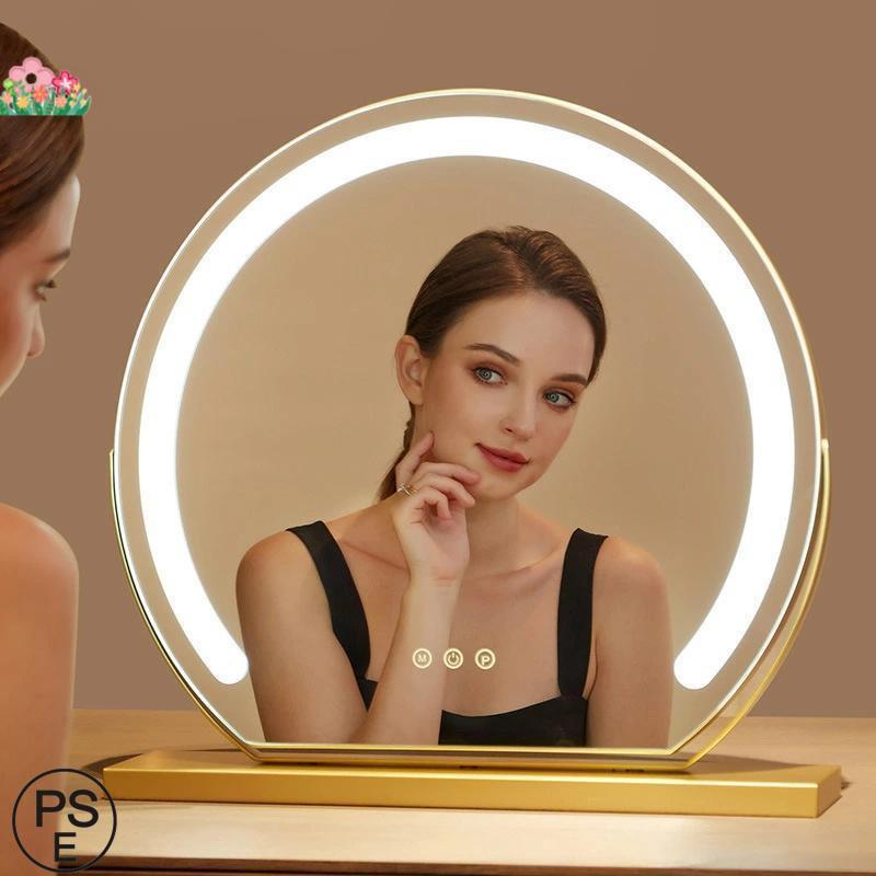 女優ミラー 卓上ミラー ライト付き 大きい 丸型 三色調光 鏡 led ライト付きミラー 化粧鏡 おしゃれ led ライト付き メイク アップ ミラー 充電式 贈り物 新居