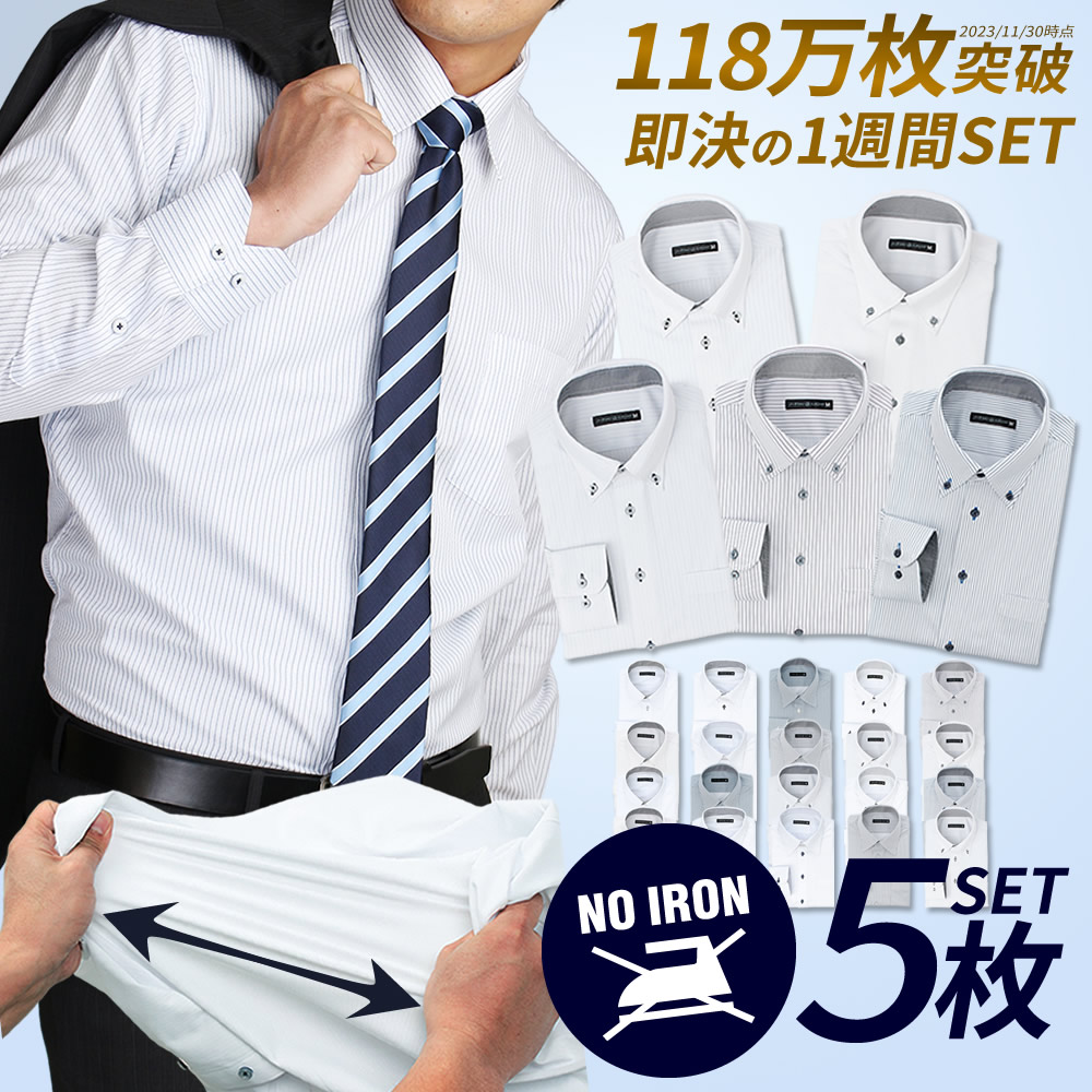 ■商品説明販売総数118万枚以上!ビジネスマンの為のワイシャツ1週間セットです。月曜から金曜まで、ワイシャツのビジネスコーディネートで迷わないように、合わせやすい形と、色、柄を考えて組み合わせ。当店最強のワイシャツローテーションとなります。