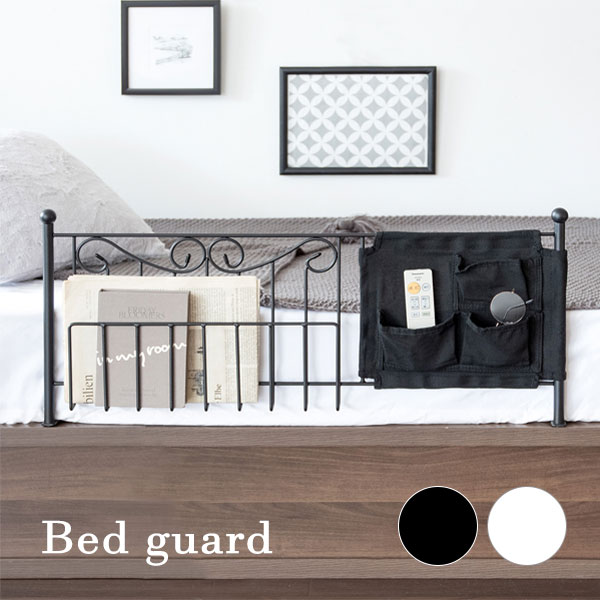 [DS-BG40R DelSol ベッドガード] 布ポケット付 転落防止 ずり落ち防止 ベッドサイド おしゃれ かわいい 姫系 シンプル 収納 アイアン 丈夫 ブックラック 白 黒