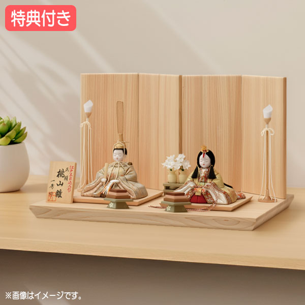 ◆特典付き 【2026年度新作】雛人形 一秀 ひな人形 木目込み 家具調 木目調 モダン 送料無料 ひな祭り 二人飾り 平飾り【親王飾(桃山雛 16号) H-14-8】