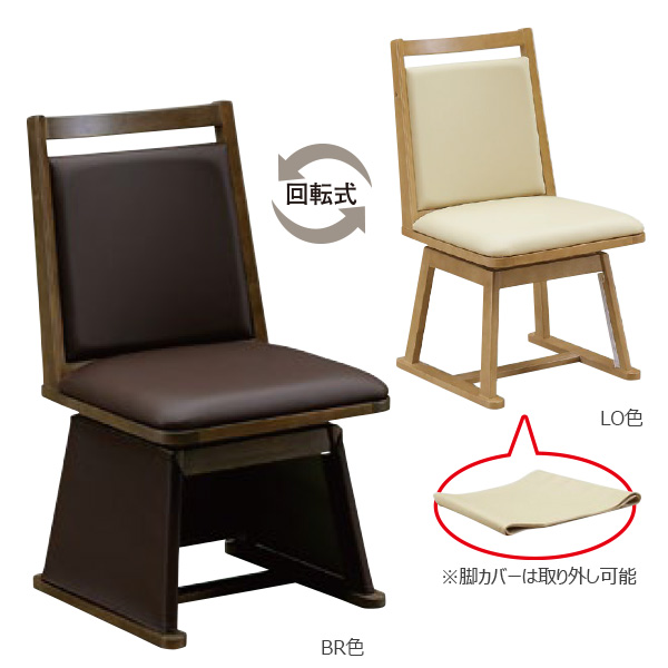 家具調ハイタイプこたつ用チェア 【回転椅子 UKC-254 LO/BR】ダイニングこたつテーブル用椅子 高脚こたつ用 こたつチェア 省エネ 節約